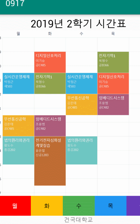 요일을 터치하면 과목이랑 시간이 표시되고 back 누르면 돌아가는 정도..