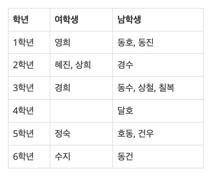 정보 초등학교에서는 단체로 2박 3일 수학여행을 가기로 했다. 여러 학년이 같은 장소로 수학여행을 가려고 하는데 1학년부터 6학년까지 학생들이 묵을 방을 배정해야 한다. 남학생은 남학생끼리, 여학생은 여학생끼리 방을 배정해야 한다. 또한 한 방에는 같은 학년의 학생들을 배정해야 한다. 물론 한 방에 한 명만 배정하는 것도 가능하다.