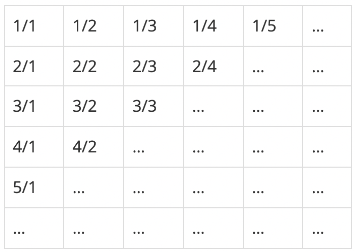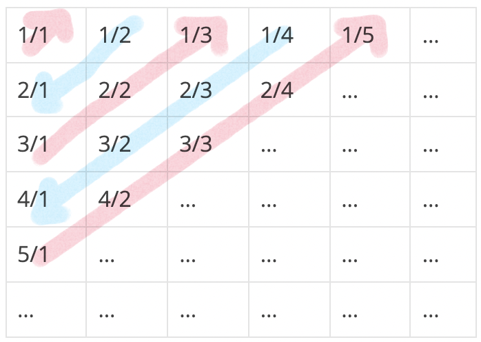 무한히 큰 배열에 다음과 같이 분수들이 적혀있다.