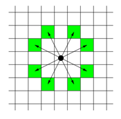 각 테스트 케이스는 세 줄로 이루어져 있다. 첫째 줄에는 체스판의 한 변의 길이 l(4 ≤ l ≤ 300)이 주어진다. 체스판의 크기는 l × l이다. 체스판의 각 칸은 두 수의 쌍 {0, ..., l-1} × {0, ..., l-1}로 나타낼 수 있다. 둘째 줄과 셋째 줄에는 나이트가 현재 있는 칸, 나이트가 이동하려고 하는 칸이 주어진다.