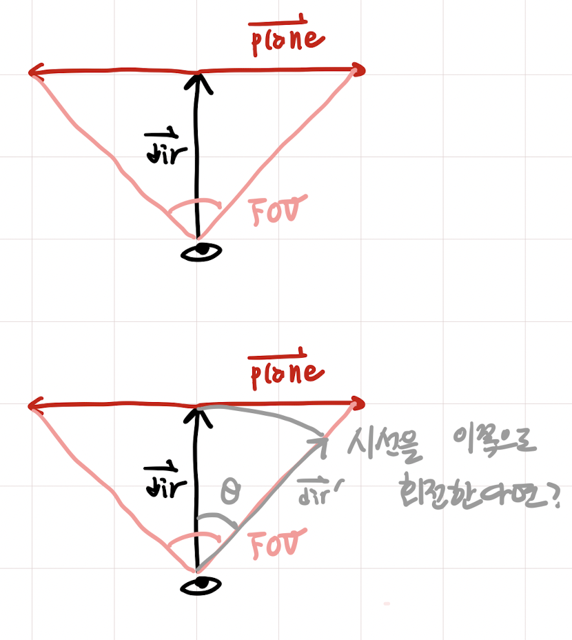 - 레이캐스팅에서 플레이어의 시선 회전을 구현하기 위해선, 플레이어의 시선 방향을 나타내는