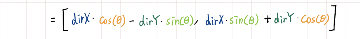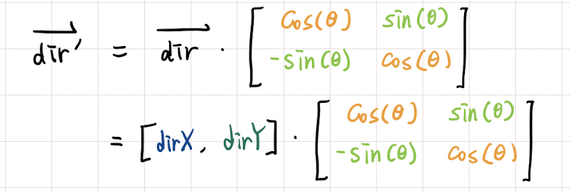 dirX = dirX * cos(theta) - dirY * sin(theta);
