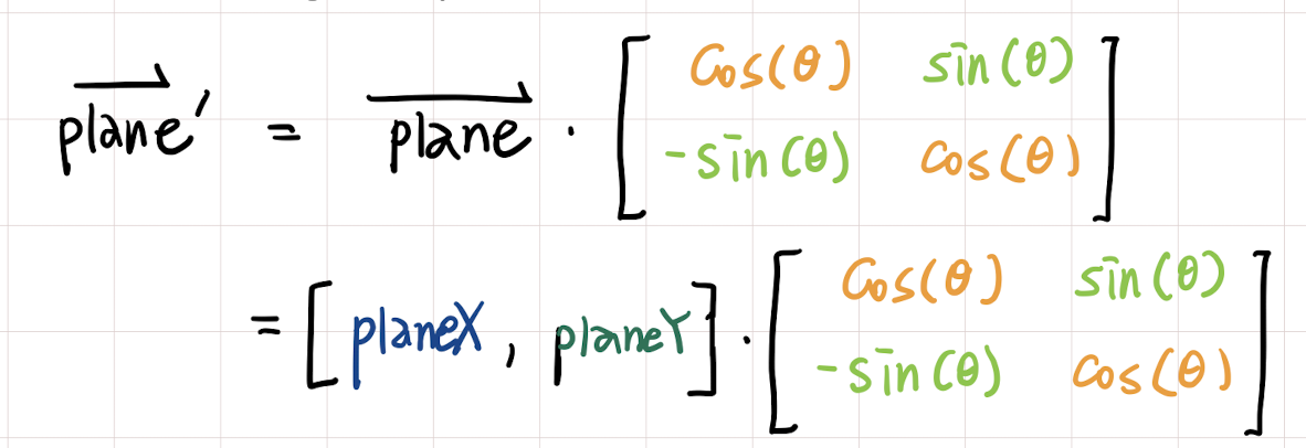 planeX = planeX * cos(theta) - planeY * sin(theta);