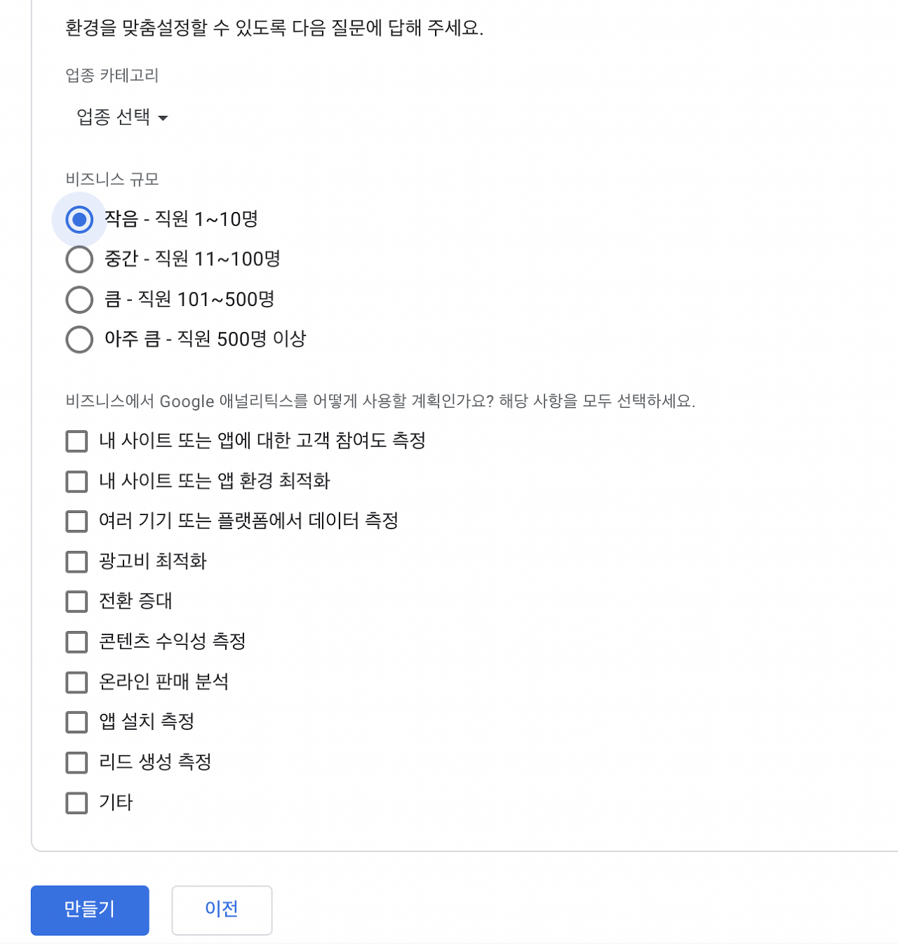 마지막으로 비즈니스 규모와 사용 용도를 명시하자