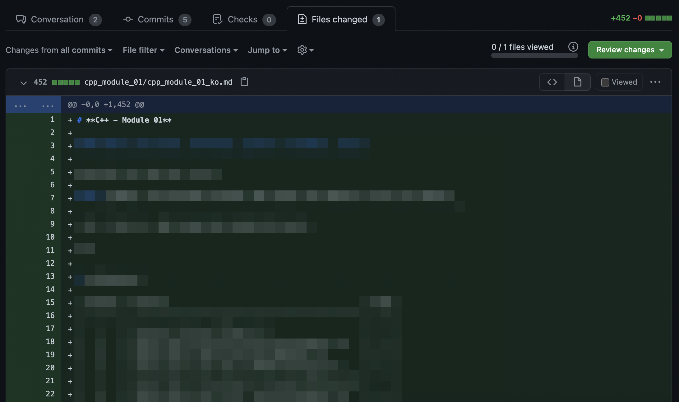 Files Changed에 들어가면 파일의 변경된 내용들이 이렇게 표시된다