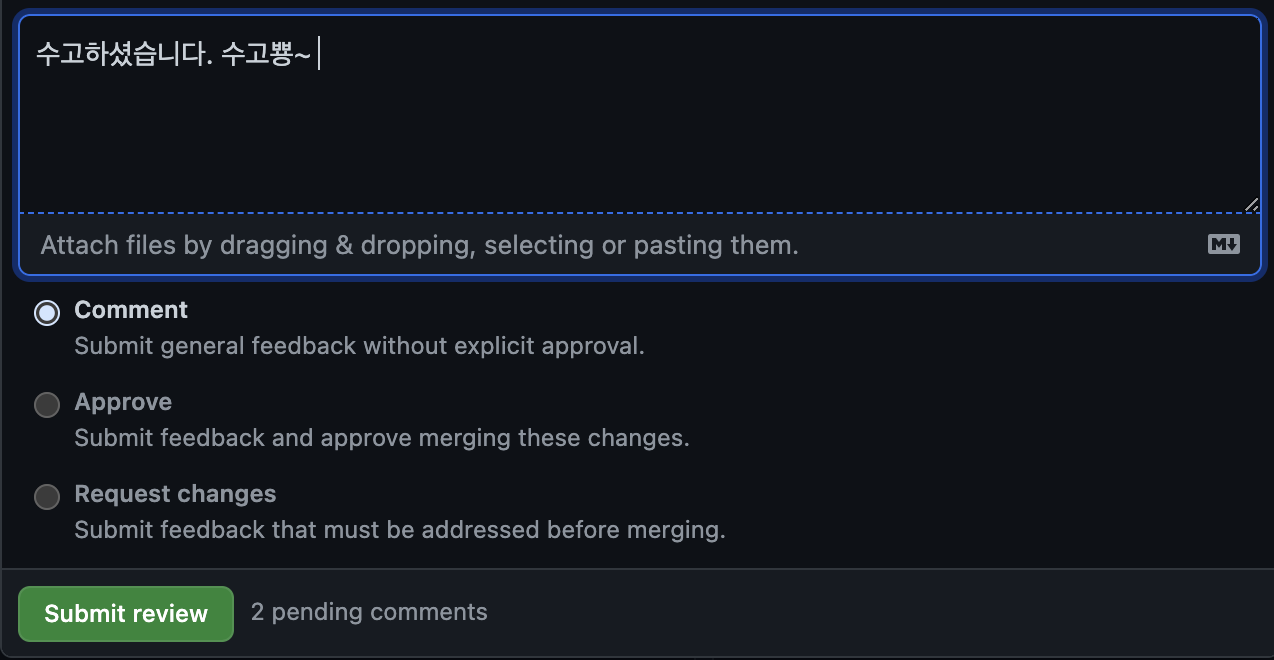 5. 리뷰 끝! 코멘트 제출!