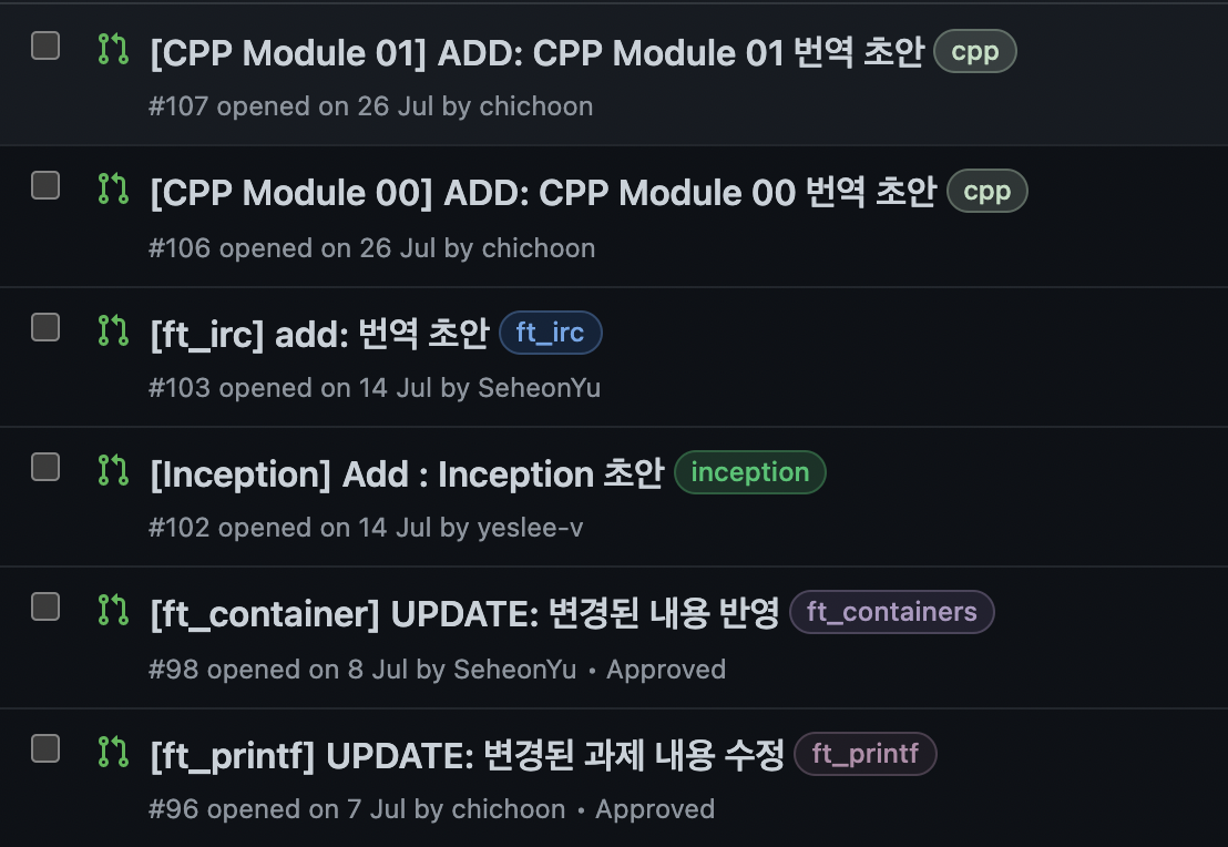 예시로 일단 내가 올린 풀리퀘스트를 선택하도록하겠다