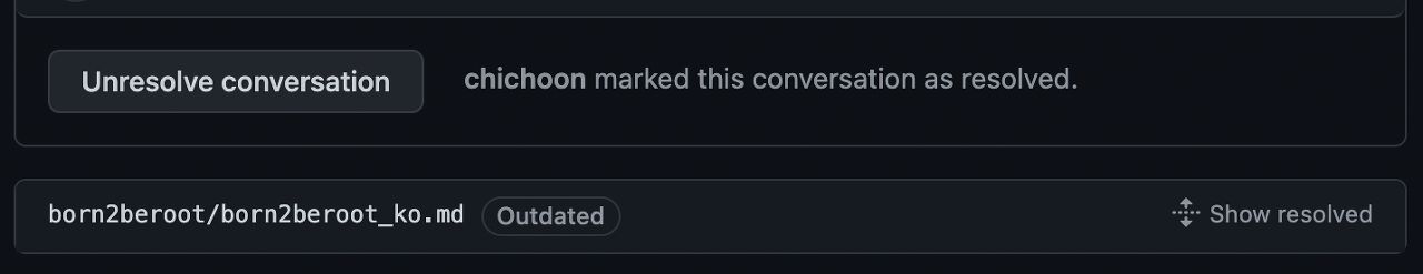 물론 show resolved 버튼을 누르면 다시 펼쳐볼 수 있다