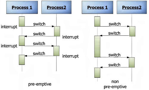운영체제가 CPU 분배 권한을 들고 있으며, 가장 자원을 필요로 하는 프로세스에게 요청이 올 때마다 CPU를 분배하고, 필요에 따라 CPU 사용 권한을 뺏을 수도 있다