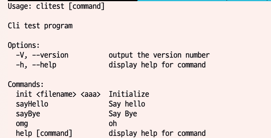 여기서는 프로그램의 이름이 clitest이므로, 훗날 명령줄에서 위와 같이 사용할 수 있게 된다