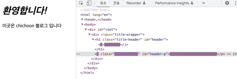 new VirtualDOMNode('p', {}, ['이곳은 chichoon 블로그 입니다']),