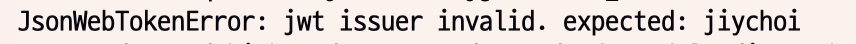 JsonWebTokenError: jwt issuer invalid. expected: <예상한 발신자>)