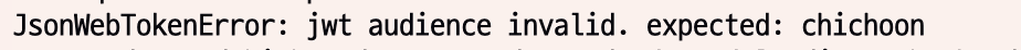 JsonWebTokenError: jwt audience invalid. expected: <예상한 수신자>)