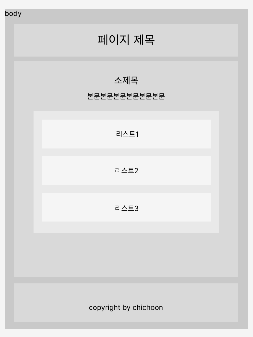박스는 div로, 문자열은 span으로 처리하다 보면 위와 같은 문서가 나올 것이다
