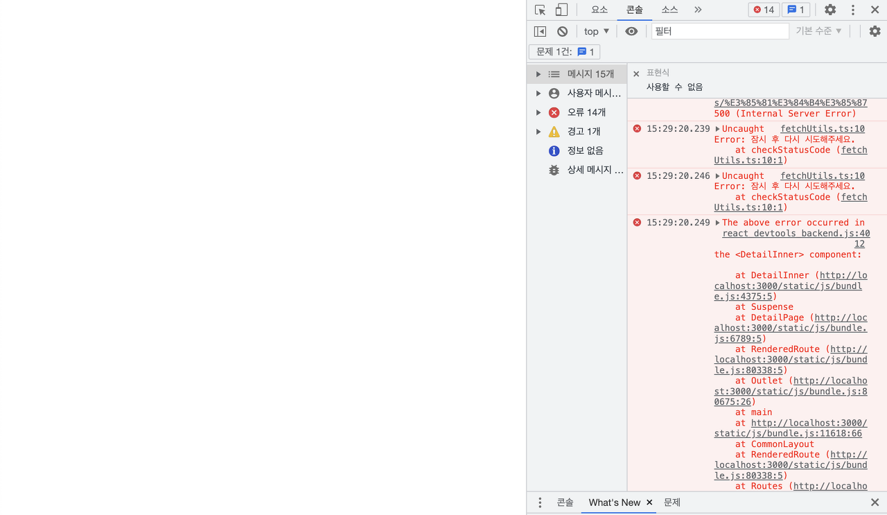 Suspense까지 적용하고, 고의로 예외를 발생시켰을 때