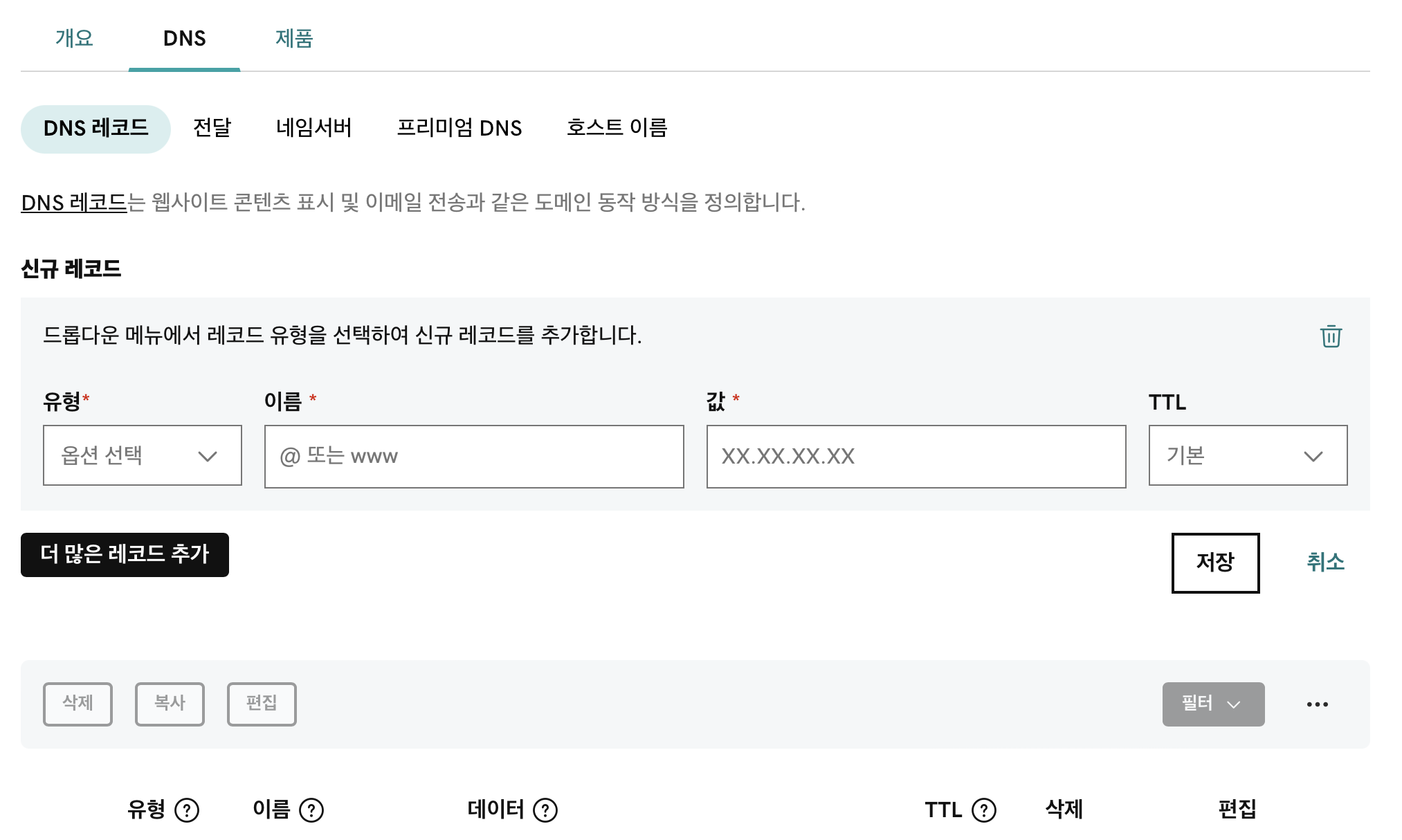 신규 레코드 추가 버튼을 클릭하여 DNS 레코드를 추가하자