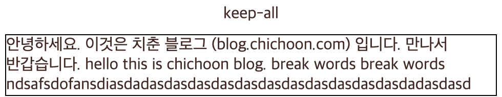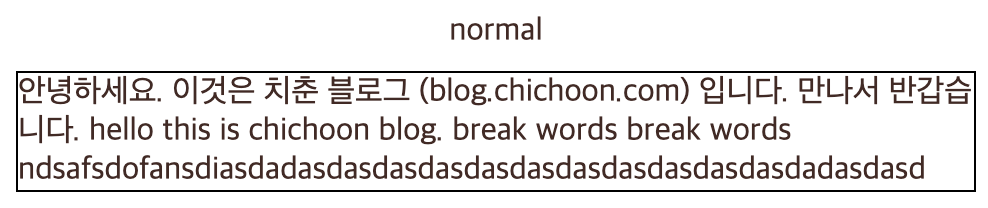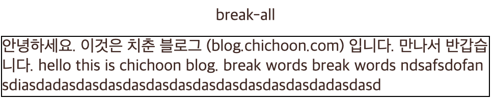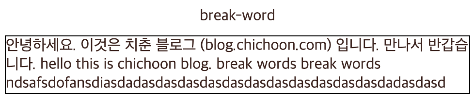 '안녕하세요. 이것은 치춘 블로그 (blog.chichoon.com) 입니다.\n만나서 반갑습니다. hello this is chichoon blog. break words break words ndsafsdofansdiasdadasdasdasdasdasdasdasdasdasdasdasdadasdasd'