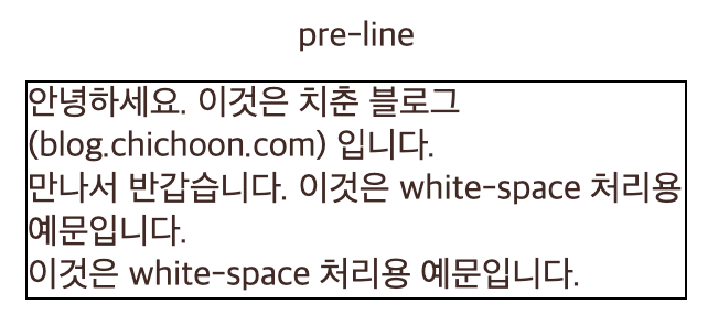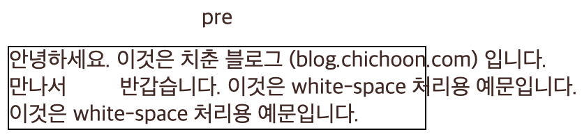 pre-wrap과 차이를 주기 위해 예제의 ‘white-space’ 와 ‘처리용 예문입니다’ 사이에 공백을 추가했다- 다음의 차이점을 제외하면