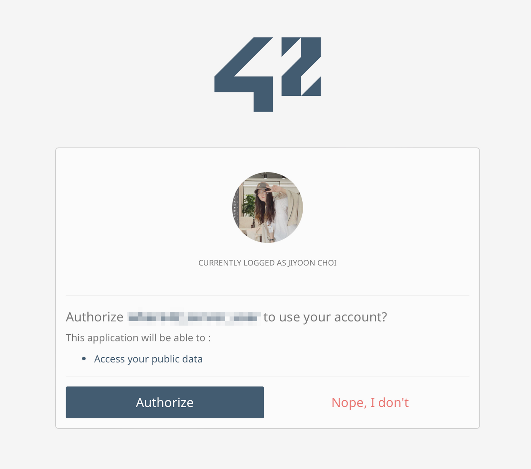 사용자 (Resource Owner) 가 https://auth.42.fr/auth… 링크에 접속하게 되면, 쿼리 패러미터가 정상일 경우에 위와 같은 화면을 볼 수 있다