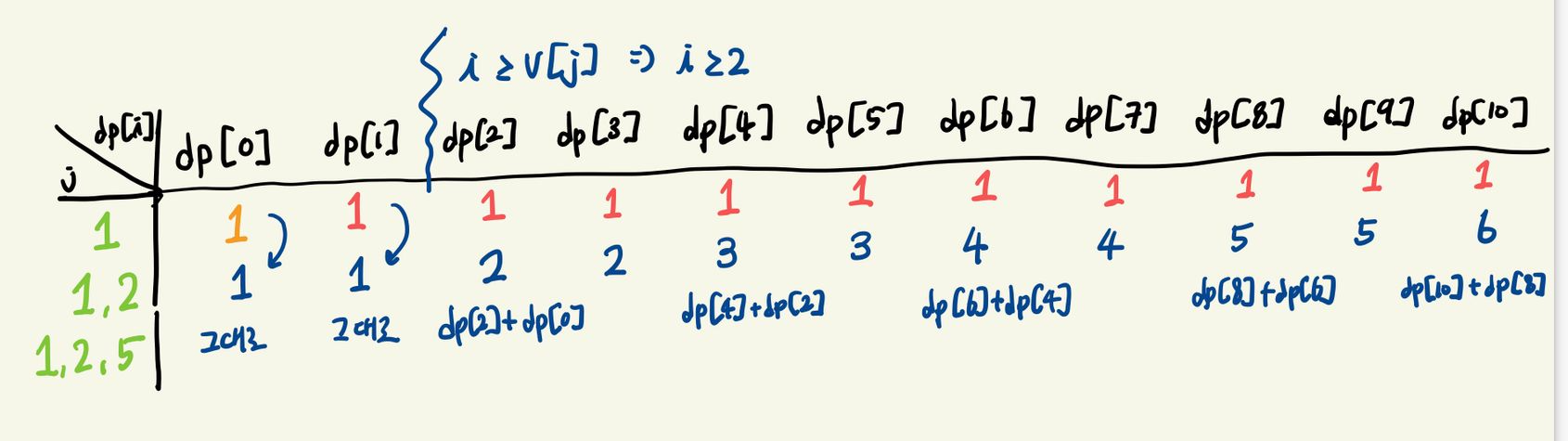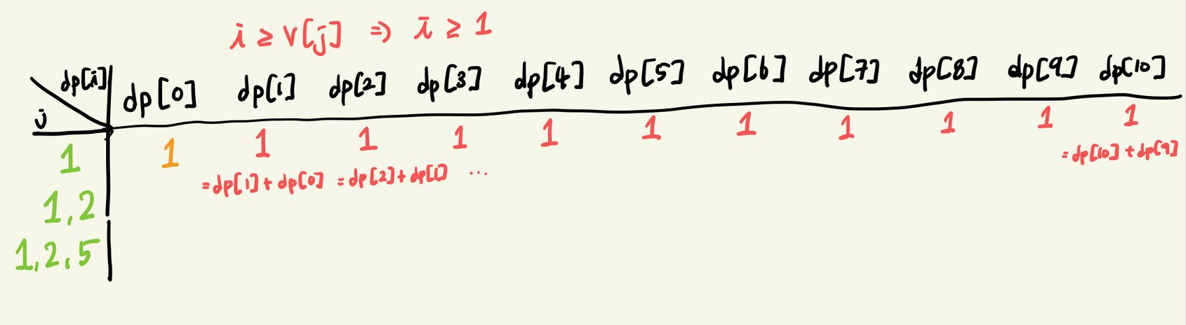 if (i >= v[j]) dp[i] = dp[i] + dp[i - v[j]];
