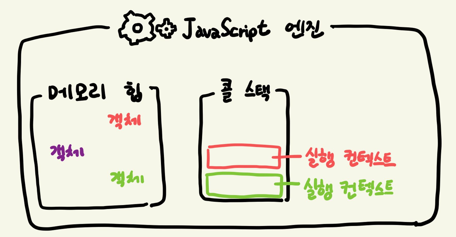 - 여기 정리해 놓은 실행 컨텍스트들이 콜 스택으로서 쌓이는 곳이다