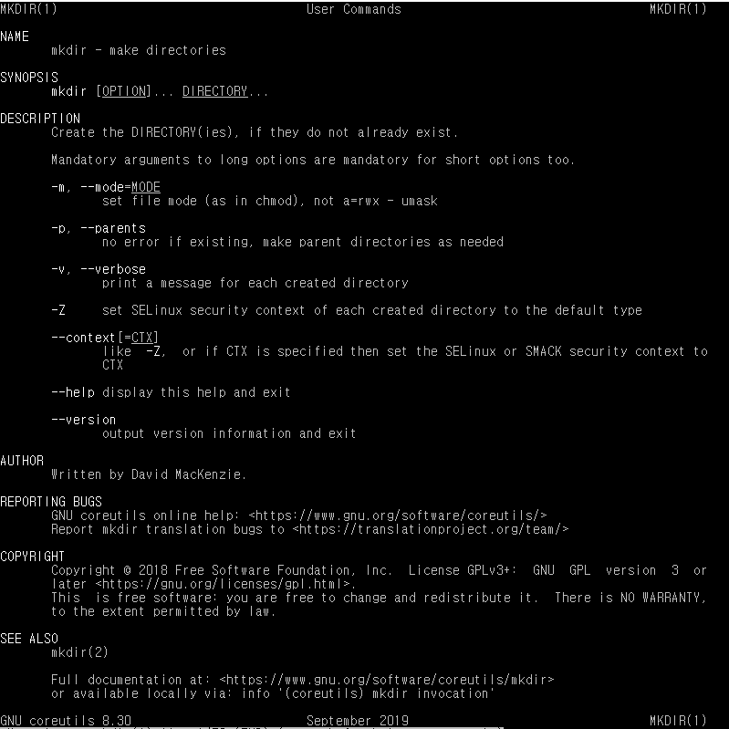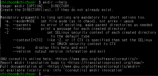 - 도움말과 함께 사용가능한 옵션들을 간단한 설명과 함께 알려준다