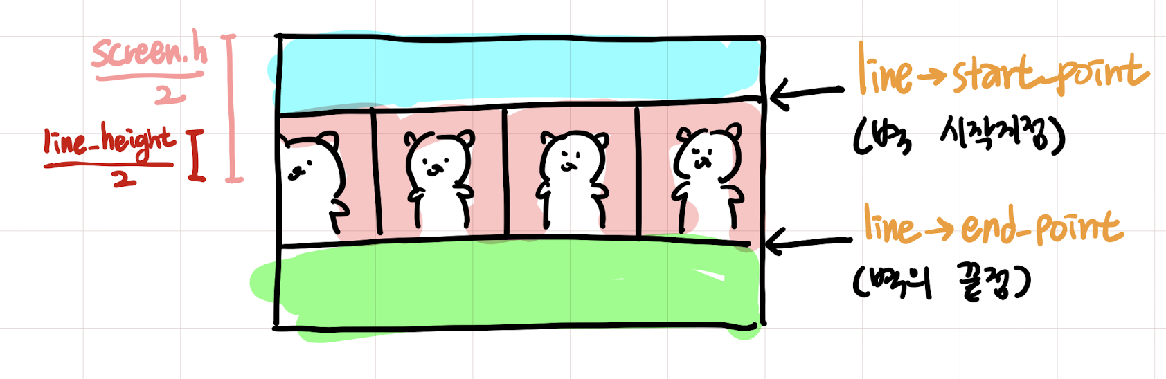 startPoint와endPoint를 사용하면 된다 (또 통일성없이 필기했지요?) - 화면상의 x좌표는