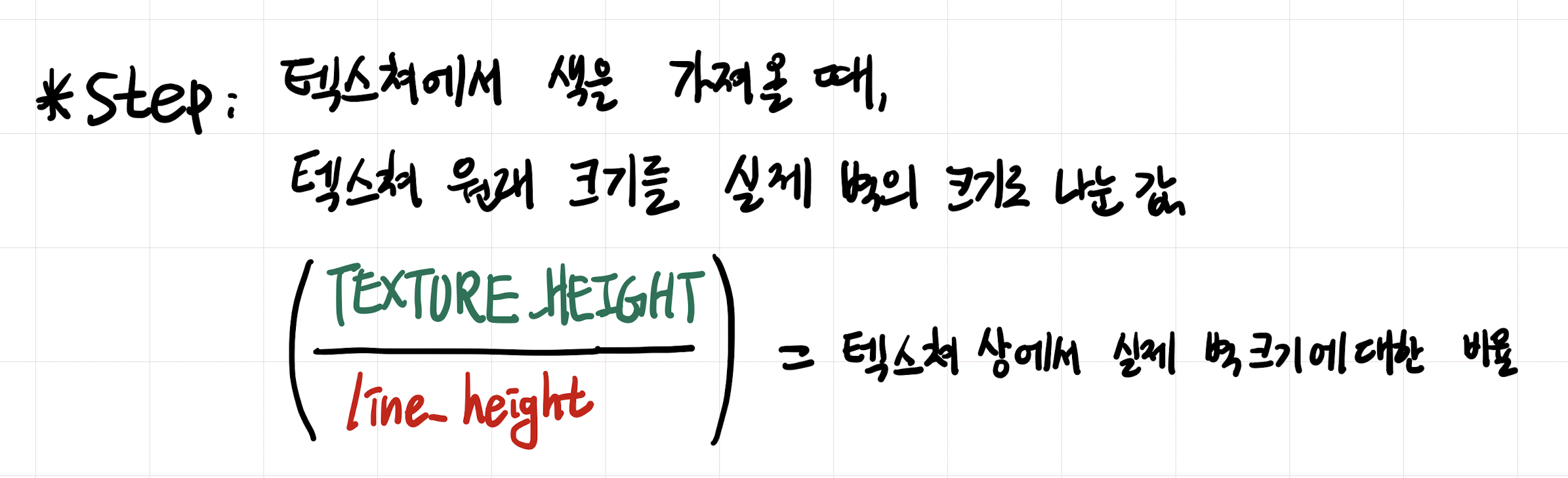 lineHeight) 와 실제 텍스쳐의 높이 (TEXTURE_HEIGHT) 가 다르기 때문에, 텍스쳐를 늘이거나 줄이기 위해 높이의 비율을 구한다