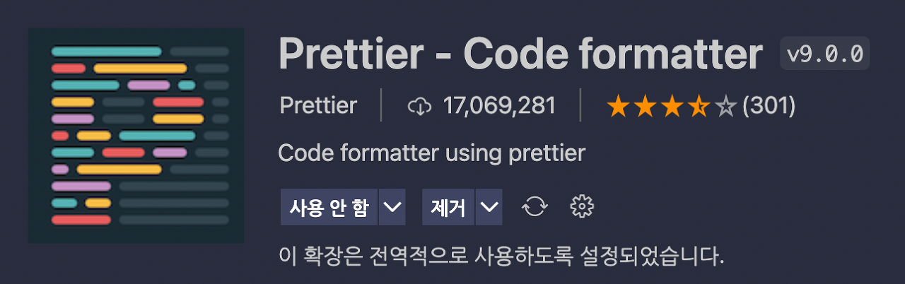 VSCode의 Prettier 확장을 설치한 상태라면, 파일을 저장할 때마다 prettierrc.js에 적용된 내용대로 코드를 포매팅한다