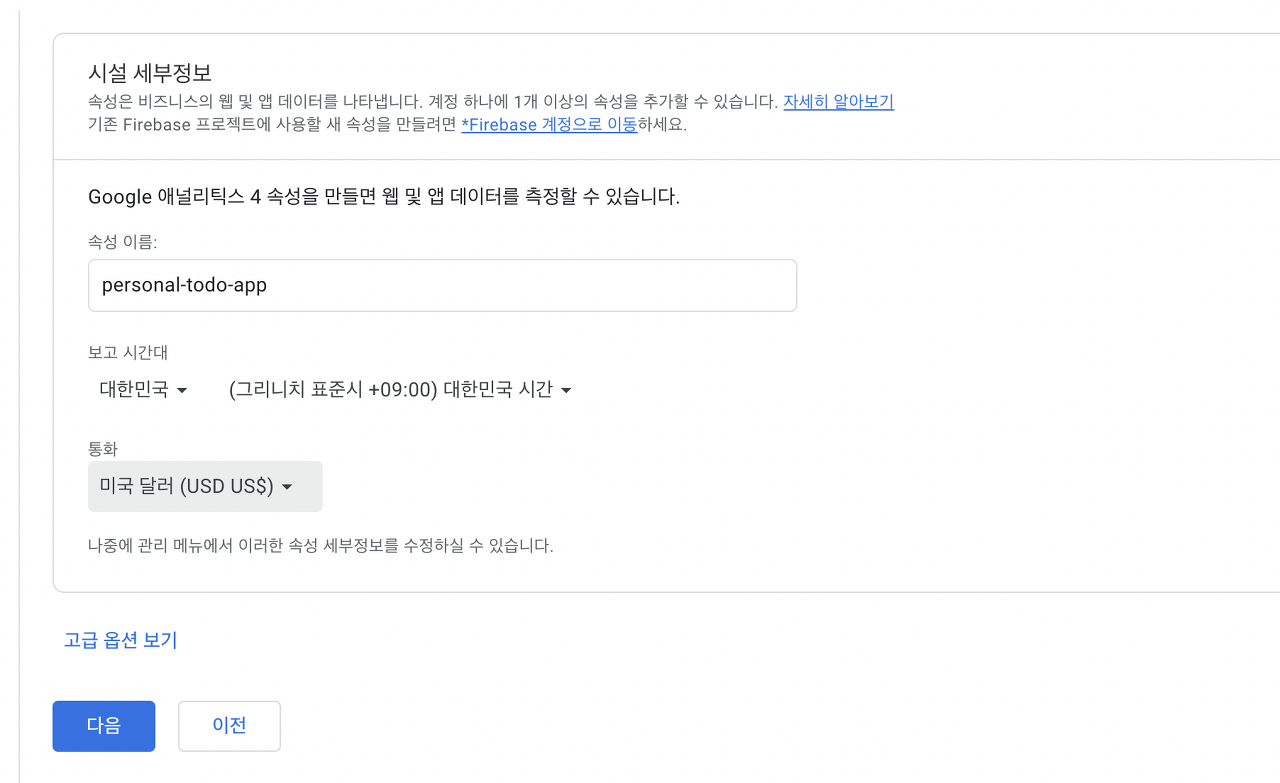 투두앱의 속성 이름과 시간대, 통화를 설정하자