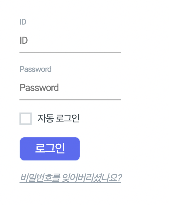 input의 테두리가 아래만 남아 있으므로 (박스 형태가 아니므로) 양 옆padding은 필요없을듯 - 비밀번호를 잊어버리셨나요? 부분은 밑줄이 필요할 듯