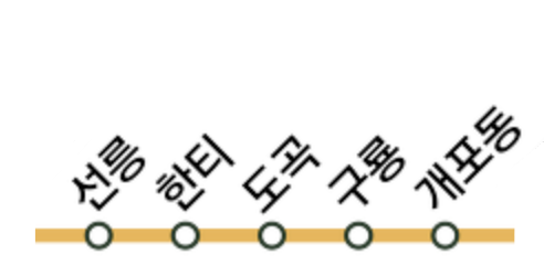 - 지하철은 선릉에서 출발하여 한티, 도곡, 구룡을 거쳐 개포동에 도착한다