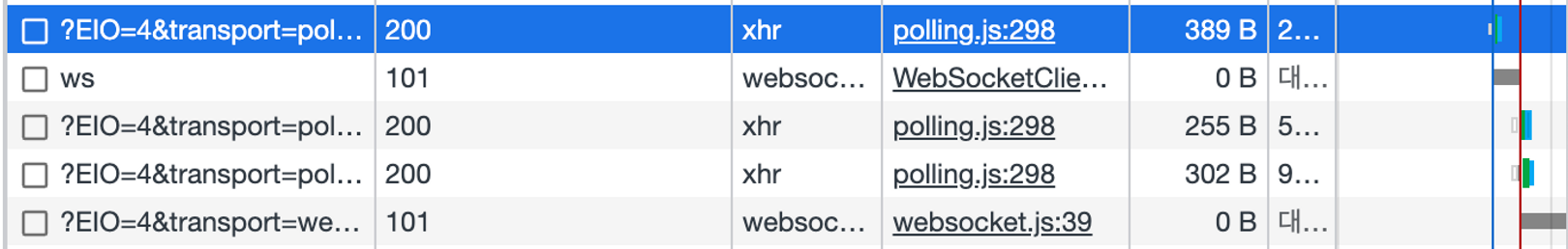 웹소켓으로 연결이 되었음에도 불구하고 롱 폴링 요청이 4번이나 가는 이유는 그것 때문이다