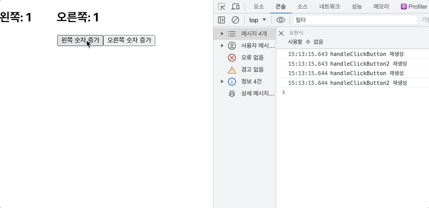 아무리 버튼을 눌러도 함수 재생성이 되지 않으면서, 함수의 동작은 제대로 되는 것을 볼 수 있다