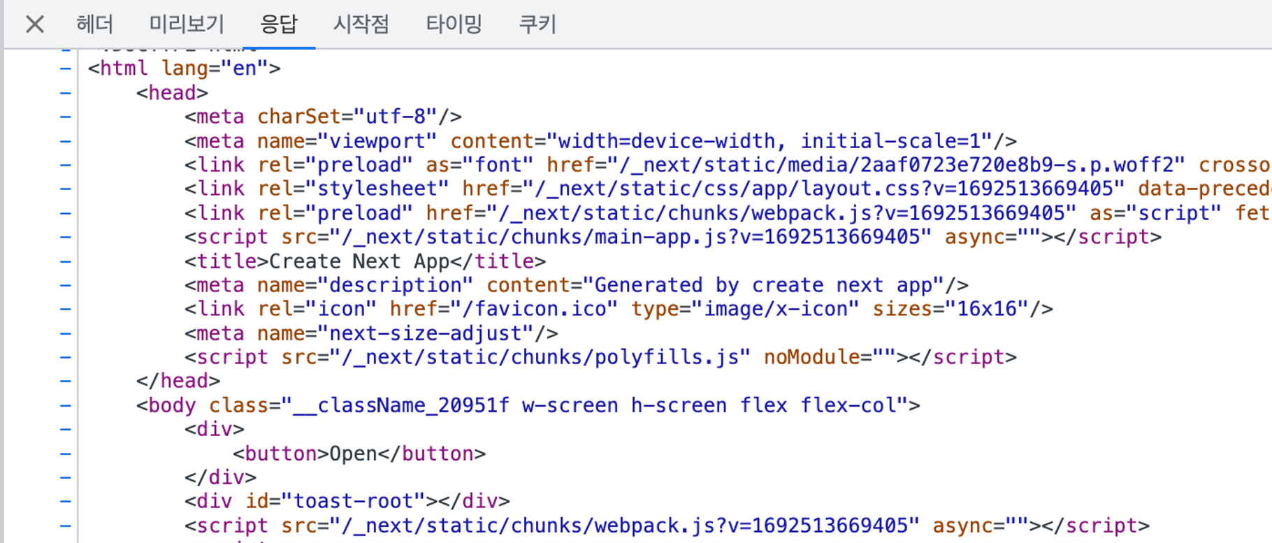 실제로 네트워크 탭에 들어가보면 use client 페이지임에도 불구하고 기본적인 html은 서버사이드에서 내려주는 것을 볼 수 있다
