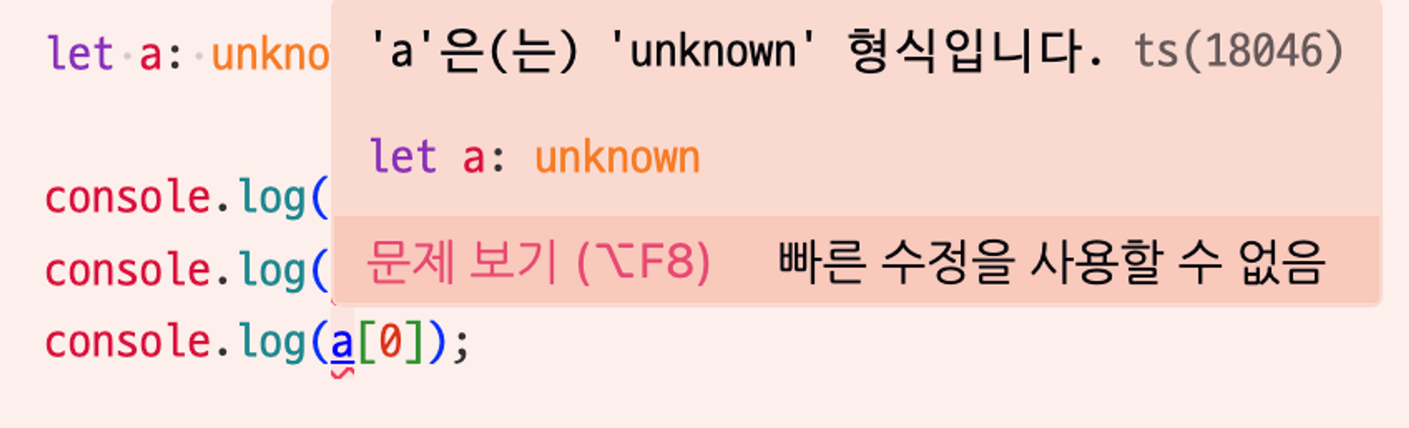 unknown을 발견한다면 “여기 들어가야 하는 타입의 종류가 뭔지 모르겠으니 누가 좀 도와줘" 라고 생각하자