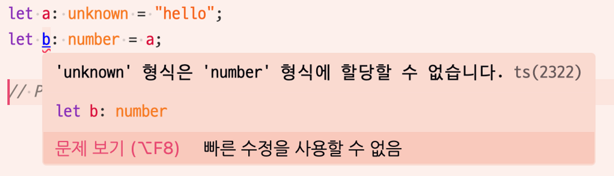 unknown 타입은 명시적으로 타입을 변환해주지 않는 이상 다른 타입에 할당할 수 없다