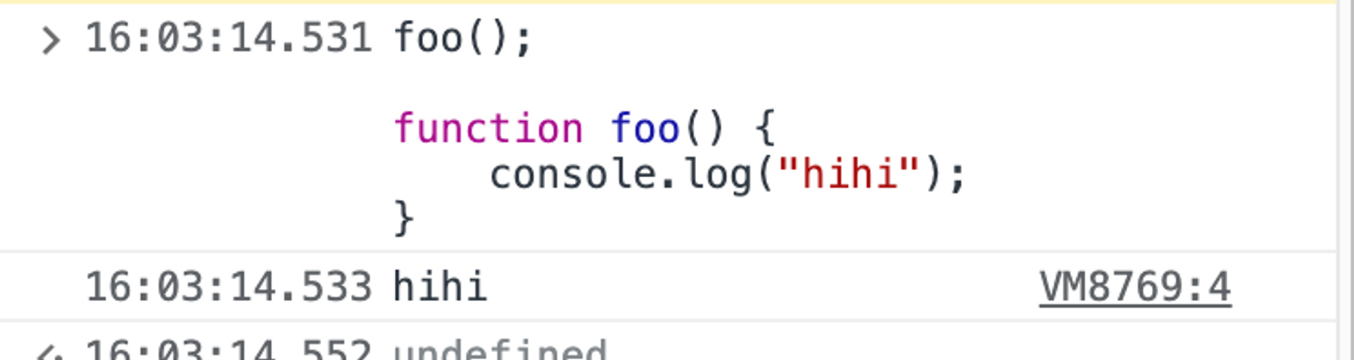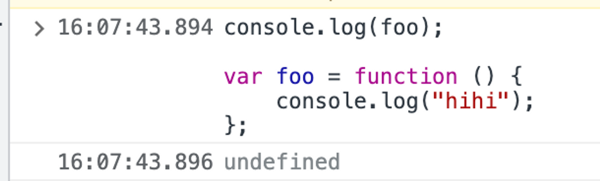 실제로 foo 에 함수를 할당하기 전 출력해 보면 undefined가 찍히는 것을 볼 수 있다