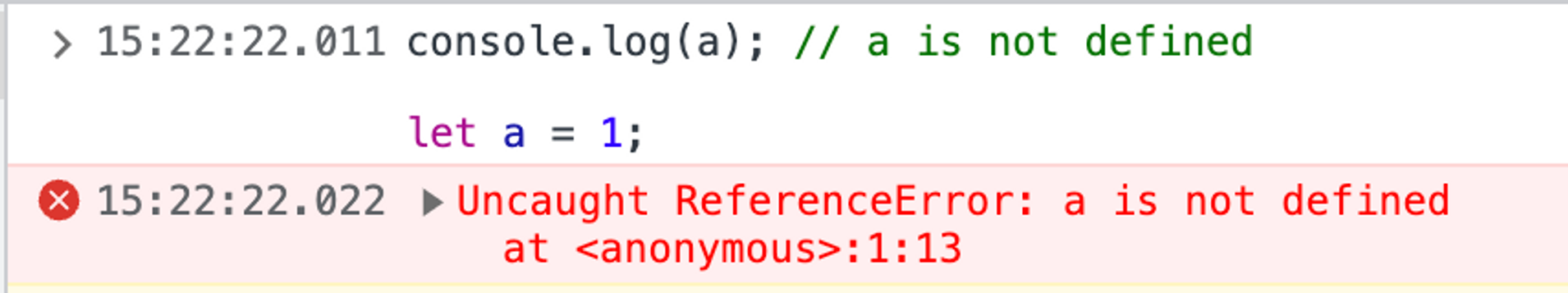 console.log(a); // a is not defined